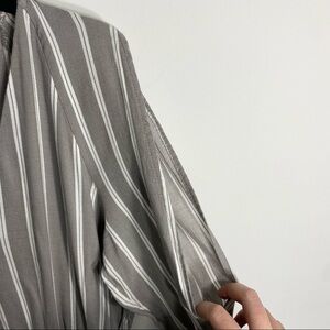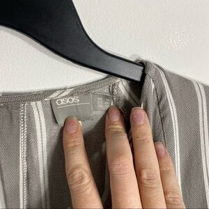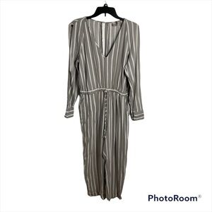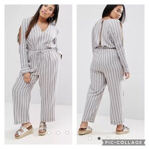 Asos Gray Striped Jumpsuit Sz 14 Women’s Cold Shoulder Open Back Long Sleeve