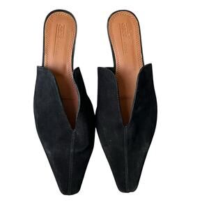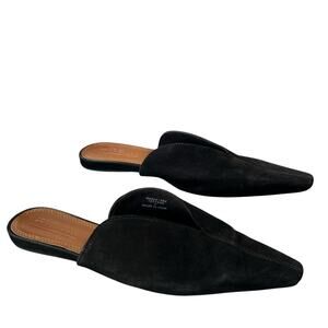Asos Landing Mules Womens 7 Black Suede Slip On Flats Pointy Comfort Shoes
