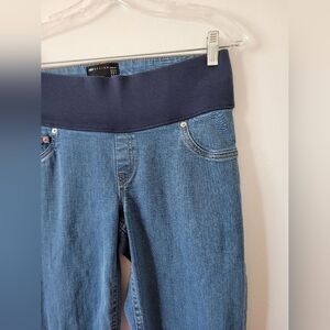 Super cute pregnancy jeans by Asos. Medium wash denim with a stretchy front panel and straight leg fit. Excellent condition. Size 6 measures approximately 38 inches long 30 inch waist 29 inseam.