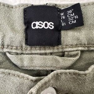 Asos Mens Jeans Size 30 Green Button Fly Slim Leg