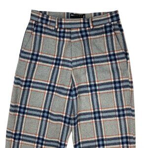 Asos Mens Wool Pants 32 Gray Blue Plaid Flat Front Straight Leg Heritage Fall