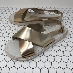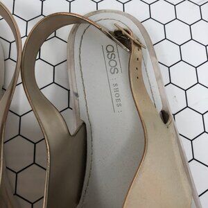 Asos Metallic Gold Freda Slingback Sandals 11. Used condition with some mars on the gold including scratches. Please see photos.