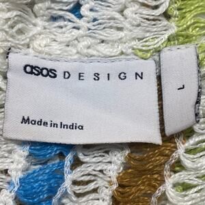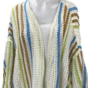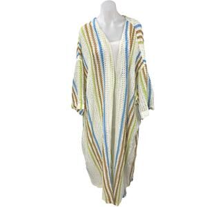 Asos Unisex Multicolor Striped Knit Crochet Kimono Open Long Cardigan Beach Cover Up L