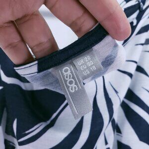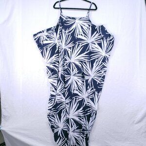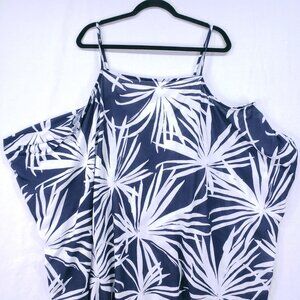 Asos Navy Blue n White Beachy Tropical Floral Relaxed Sheer Maxi Dress Size 18