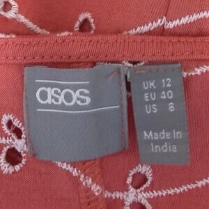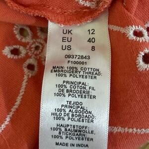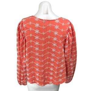 Asos Orange Floral Embroidered Eyelet Puff Long Sleeve V-Neck Blouse Top Size 8
