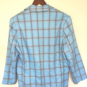 Asos Oversized Blazer US4 Sky Blue Plaid Double Breasted With Shoulder Pads NEW!