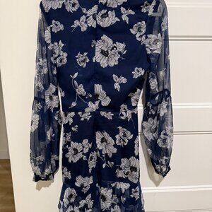 Floral wrap dress with tie. Sleeves are sheer