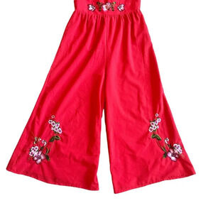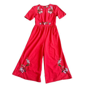 Asos Red Midi Length Jumpsuit Embroidered Floral Short Sleeve Size 6 Women's