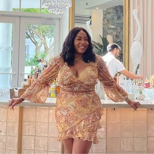 ASOS DESIGN long sleeve wrap top and mini skirt with ruffle detail in vintage paisley print.