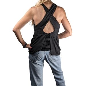 Asos Sexy Black Sleeveless Drapey Mesh Ruffle Elastic Waist Peplum Top Size 4