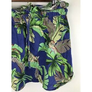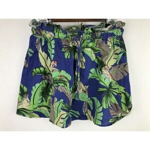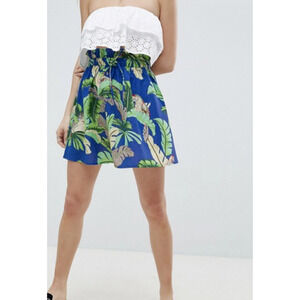 Asos Skirt 12 Tropical Parrot Paper Bag Tie Waist Skater Vacation Linen Blend