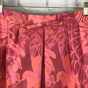 Asos A-line skirt in a shimmery pink with Hibiscus floral print. Back zipper, pockets, bow, box pleats, fully lined. Cute and dressy - perfect for a summer wedding, work, party, etc. Size 14.