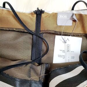 Asos Striped Gold Black Pleats Midi Skirt. NWT.