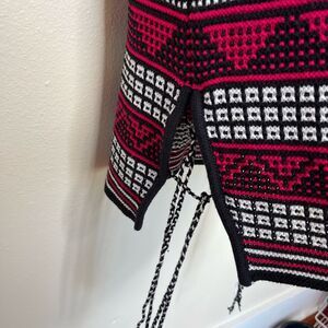 Asos Sweater Knit Tunic Dress Black White Pink Aztec Print Tie Sides Womens 8