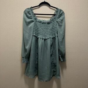 Asos Teal Shirred Skater Dress Long Sleeve Babydoll Mini Dress Smocked Size 6