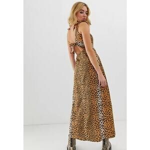 Asos Tie Back Linen Maxi Dress in Leopard Print Women's 6 Casual Weekend