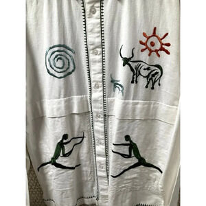 Asos Top Women M Medium Multicolor Linen Collared Embroidery Cowboy Ranching