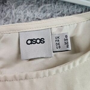Asos Tunic Top Blouse Women Sz 2 Sheer Lined 3/4 Sleeve Beige
