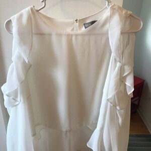 Asos white ruffled cold shoulder tiered gold button long sleeve blouse.