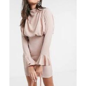 Asos Women's Bell Sleeve Drape Front Cowl Neck Mini Dress Blush Pink Size 8 NWT
