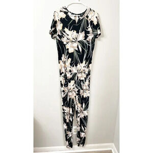 Asos Womens Black Tan Jumpsuit Size 8 Maternity Floral Short Sleeve Keyhole