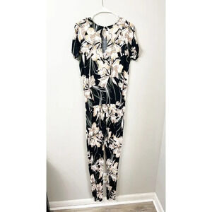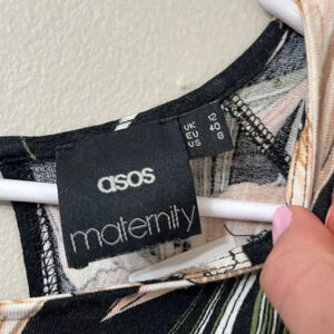 Asos Womens Black Tan Jumpsuit Size 8 Maternity Floral Short Sleeve Keyhole