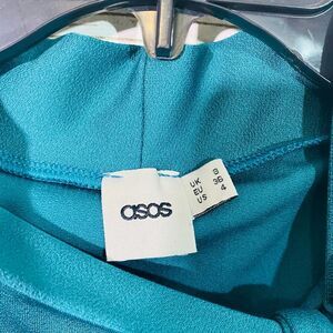 Asos Women's Blue Sleeveless Tie Neck Bodycon Shift Midi Dress Size 4