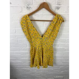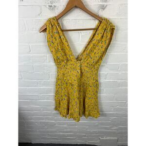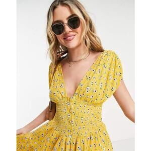 Asos Women's Button Front Tiered Mini Sundress in Yellow Floral Print Size 4