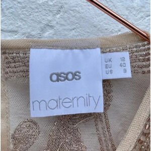 Asos Womens Elegant Beaded Mesh Maternity Dress Cream Sz 8
