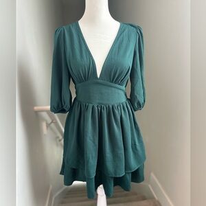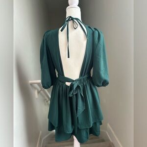 Asos Women's Emerald Green Tiered Mini Dress Open Back Size 4 Petite