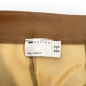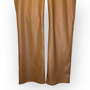 Asos Women's Faux Leather Crock Print Pant Size 12 Tan Nude Straight Leg Vegan