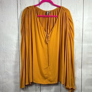 Asos Womens Long Sleeve Yellow Mustard Cold Shoulder Ribbed Blouse