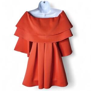 Asos Womens Mini Dress 0 Orange Pink Off the Shoulder Ruffle Fit & Flare Stretch