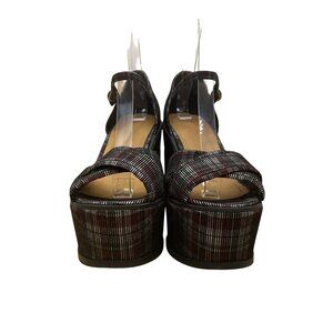 Asos Womens Multicolor Plaid Platform Chunky Block Heel Ankle Strap Sandals Sz 4