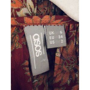 Asos Womens Size 2 Red Oversized Peasant Blouse Floral Ruffle Hem Boho