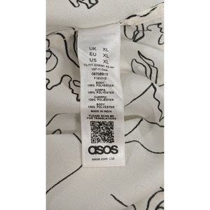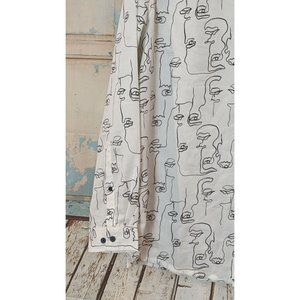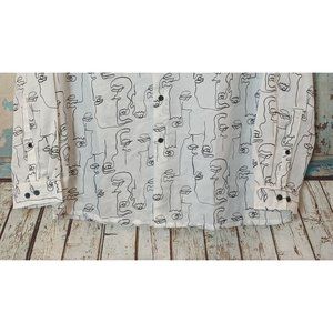 Asos Womens Size XL White Sketchy Faces Print Long Sleeve Button Up Shirt Top