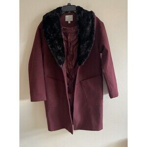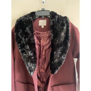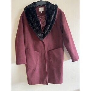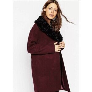 Asos Burgundy Coat Faux Fur Collar US Size 2. in excellent preowned condition. Worn for 1 Winter only. no flaws. retailed $154 and it completely out of stock in this style and color. Coat by ASOS Collection Woven fabric is in a Cocoon shape Shaggy faux fur collar Dropped shoulder seams Press-stud front fastening Hip pockets Slightly oversized.