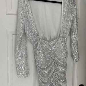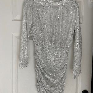 Asos exclusive sequin high neck drape detail mini dress in silver