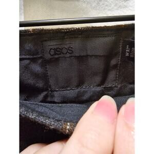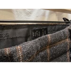 Asos wool blend slacks, 32"x32". Dark gray with a square plaid like pattern, high rise, pleated front, pockets, no stretch.