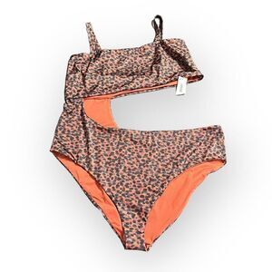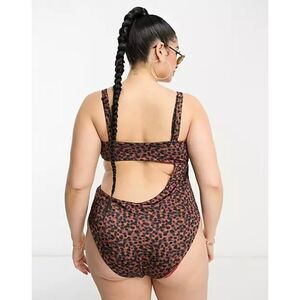 Asos One Piece Swimsuit Womens Plus 18 Black Orange Tortoise Bandeau Cut Out NWT