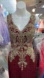 Burgundy prom dress with intricate gold detailing. Perfect for a standout look.