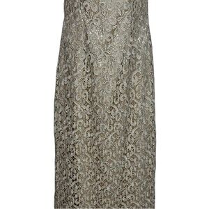 Keywords: Prom, Formal, Wedding, Brides Maid, Metallic, Gold, Lace, Intricate, Spaghetti Straps, Juniors, Women’s, Lined, Evening Dress