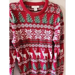 Aspen Christmas Fair Isle Red Crew Neck Sweater Size Mens Medium