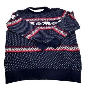 Aspen Christmas Polar Bear Fair Isle Navy Crew Neck Sweater Men's Size XL Large