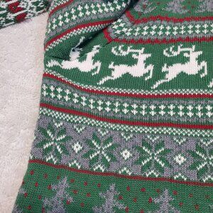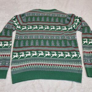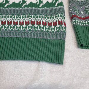 Aspen Green White Gray Fair Isle Nordic Reindeer Christmas Knit Sweater Men XL