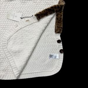 • Color: Cream ivory knit with leopard print faux fur trim