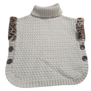 Cute sweater poncho vest with faux leopard fur trim and 4 side buttons. Keep your kiddo warm, cozy and stylish
