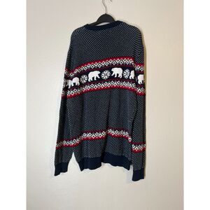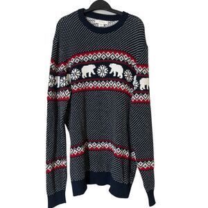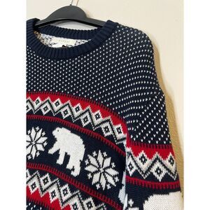 Aspen Navy Blue Fair Isle Nordic Polar Bear Print Sweater Mens Sz L Holiday