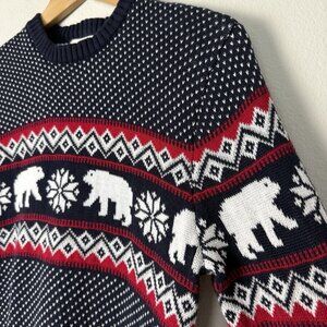 Aspen Navy Polar Bear Fair Isle Sweater Mens Small Holiday Winter Cozy