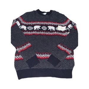 Aspen Navy Polar Bear Snowflake Fair Isle Christmas Holiday Sweater NWT Size M